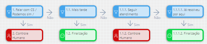 Nesse Novo Fluxo, você irá criar alguns filtros conforme a ação de cada botão. Onde ele ira validar os botões com a variável **resposta.**
